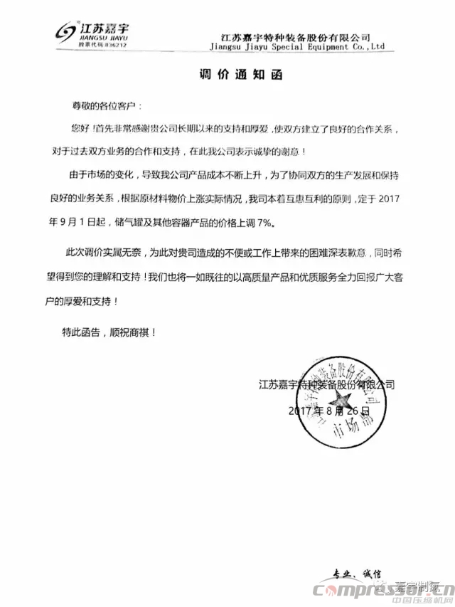 今年3、4月份的时候,压缩机整机、轴承电机、三滤等,就率先开始了涨价,最近,受钢材等原材料价格上涨的影响,压缩机储气罐、皮带等开始出现了价格上涨的趋势。压缩机的整体成本又一次提升。