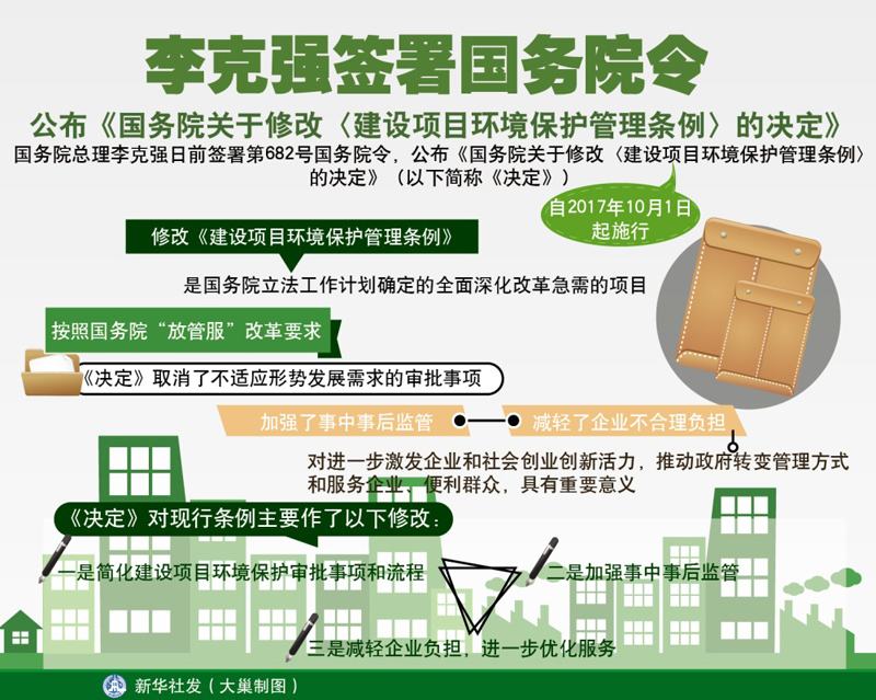 日前,国务院总理李克强签署了一份《国务院关于修改〈建设项目环境保护管理条例〉的决定》 文件称自今年10月1日起,“审核、审批建设项目环境影响报告书、环境影响报告表及备案环境影响登记表,不得收取任何费用。”对大多数企业来说,这是个重大利好的好消息了,企业环评相关的申请、审核、报表等等费用全免的话,从根本上鼓励了企业进行环保测评,而且文件还规定,相关部门必须在10个工作日内给出审核结果,逾期则视为审核通过。